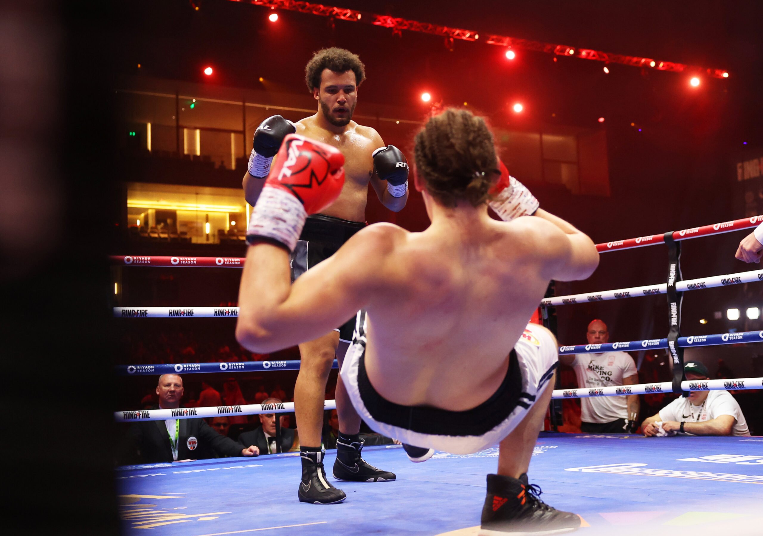 Heavy-handed prospect Moses Itauma is only 19 and he’s already blasting people away for fun. Opponent Ilja Mezencev isn’t exactly brimming with confidence during the ringwalks. A big puncher on paper, let’s see what he’s got.