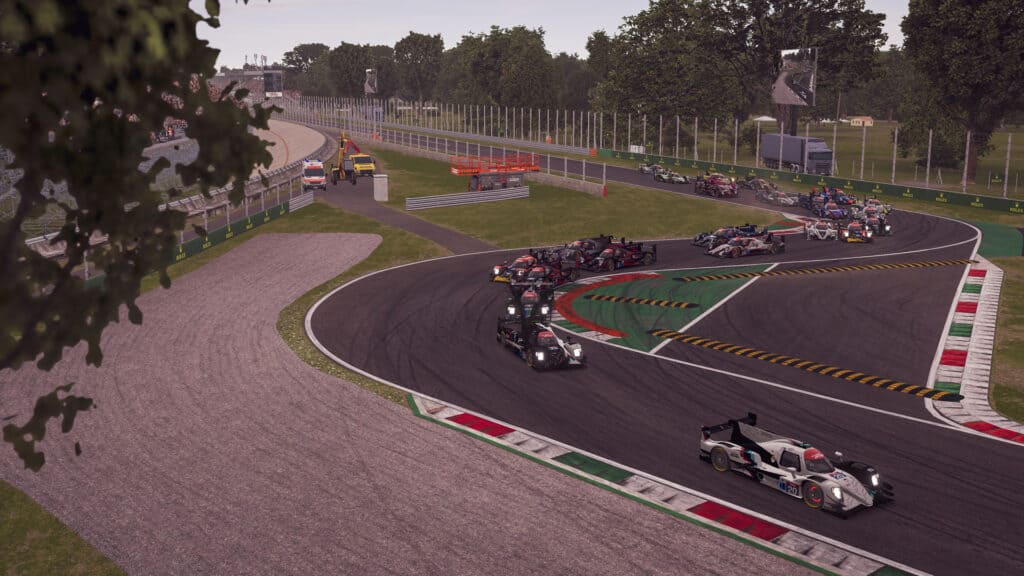 It started off with a spin in the LMP class. The No. 21 SEM9.Axle LMP which was driven by Naquib Azlan got tagged as things spread out. Azlan clipped the grass and wound up bowling into the No. 8 R8G Esports LMP which had Marcell Csincsik behind the wheel. Everyone was able to continue onward.