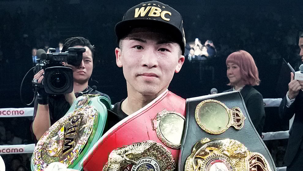 Naoya Inoue with some of his belts